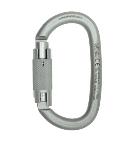 Oval carabiner carbon steel, wide-opening and screw sleeve. High load of 40KN. Ideal for heavy duty applications and for connection to structur...