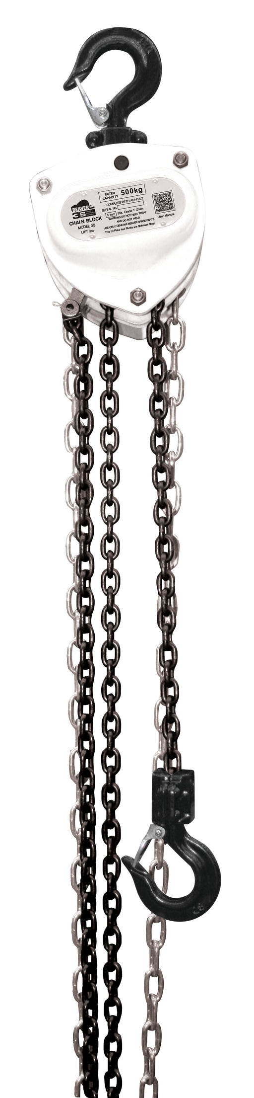 Color Coded to International Lifting Standards.Comes Supplied With 1.5m drop Chain (excludes 500kg which comes with 1m)Extra length Chain Availabl...