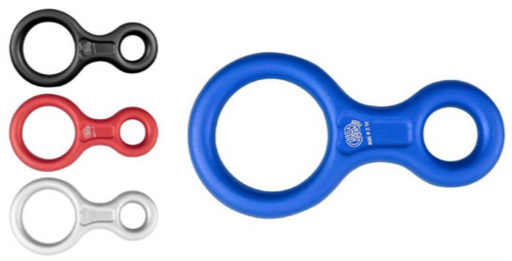 Figure '8' descender with wings for create a locking knot. Perfect for belaying the first climbing with double ropes. The large central opening all...