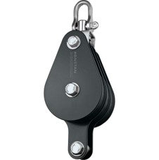 Triple block with three 75mm (3") sheave, swivel shackle, becket and black powder coated 316 stainless steel side plates. FEATURES Load rated Fu...